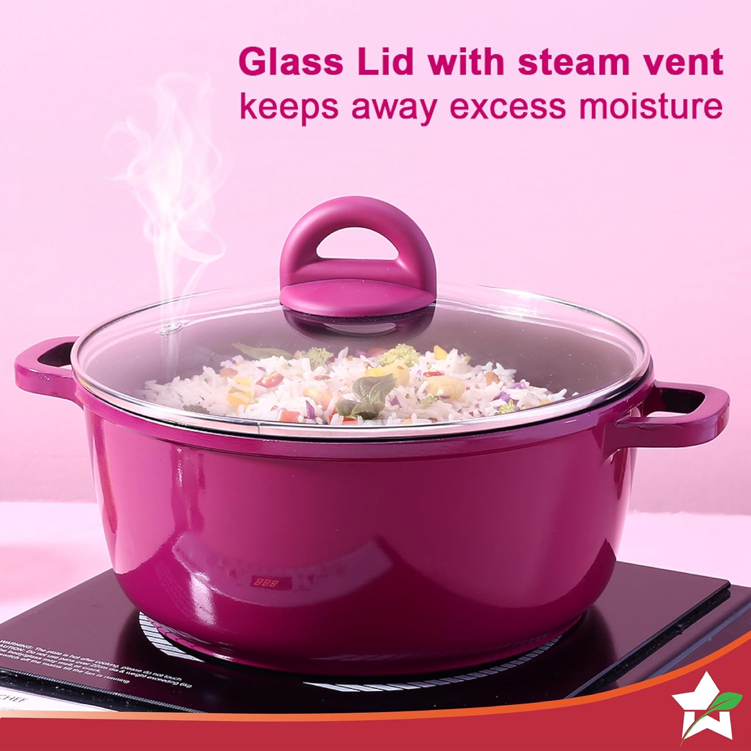 Wonderchef Die-cast cookware is the toughest cookware available. Proven by a rigorous test, the range is so sturdy that the cookware doesn't lose shape even if an SUV car runs over it. The DURAMAX Japanese non-stick coating ensures minimal oil use, excellent abrasion resistance, and is 100% free from PFOA for healthy cooking. It is energy efficient and compatible with all cooking surfaces.