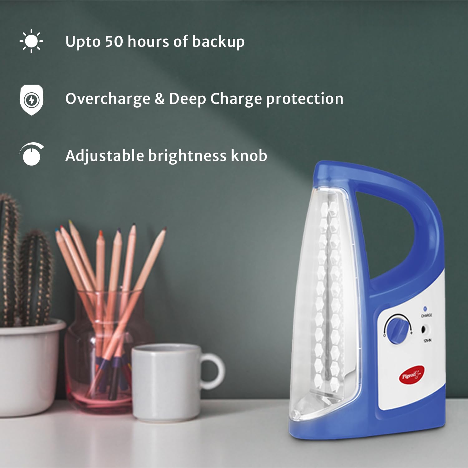 The Pigeon Equino LED Emergency Rechargeable Lamp is a reliable lighting solution designed to provide illumination during power outages and outdoor activities. It features a 1600 mAh maintenance-free battery, offering up to 50 hours of backup when fully charged.