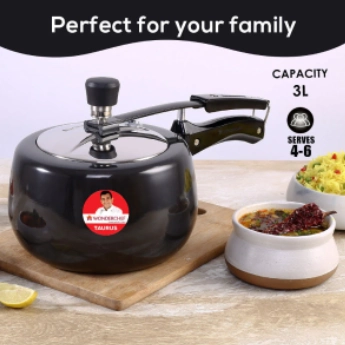Wonderchef pressure cookers are made of superior quality stainless steel and virgin aluminium with 60 microns anodized coating and have a strong and sturdy body. All our pressure cookers have a safety valve and gasket release system for enhanced protection. The handles offer an easy and comfortable grip. Great looks, colours, and superb performance make Wonderchef pressure cookers the ideal choice for cooking various dishes.