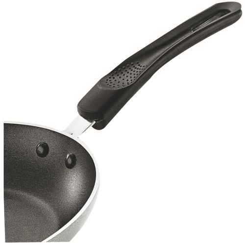 Butterfly Raga Aluminium Frypan. It is made with high-quality non-stick aluminium, which helps in the even distribution of heat. It is an ideal cookware for any kitchen. It is easy to clean, wash and is long-lasting. This cookware is used for preparing and cooking food or stylishly serving food. It doesn't burn food and retains essential minerals in food as it has a non-stick coating. The fry pan is used for frying, searing, and browning foods. It has a comfortable handle which makes it easy to carry and handle. It is compatible with a gas stove.