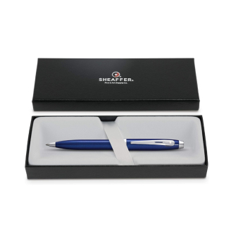 The Sheaffer 100 is the ideal gift for young professionals stepping up into the fine-writing category. Building on the success of Sheaffer's best-selling collection comes the addition of three new finishes in Glossy black and blue lacquers and chrome with gold-tone trim. Sleek and sophisticated, the new Sheaffer 100 finishes provide quality and style at a value price point. Glossy blue lacquer with polished chrome plate trim Smooth, convenient twist action mechanism Specially formulated ink flows flawlessly for a smooth writing experience.