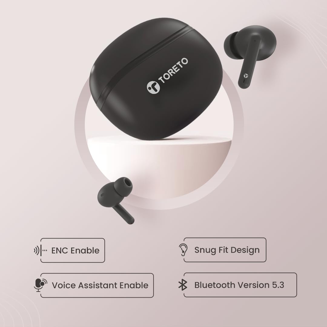 The Toreto Air sync earbuds are a stylish and feature-packed pair of true wireless earphones designed to deliver a premium audio experience. With up to 30 hours of total playback time, they are ideal for extended use throughout the day, whether you're commuting, working out, or relaxing. The earbuds are equipped with 10mm dynamic drivers that produce clear HD sound with deep bass, ensuring rich audio quality across music, calls, and video playback.