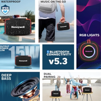 Elevate your listening experience with the HONEYWELL Suono P400, a premium wireless Bluetooth speaker designed for both power and portability. With up to 10 hours of continuous playtime, the Suono P400 is perfect for home, outdoor adventures, or on-the-go entertainment.