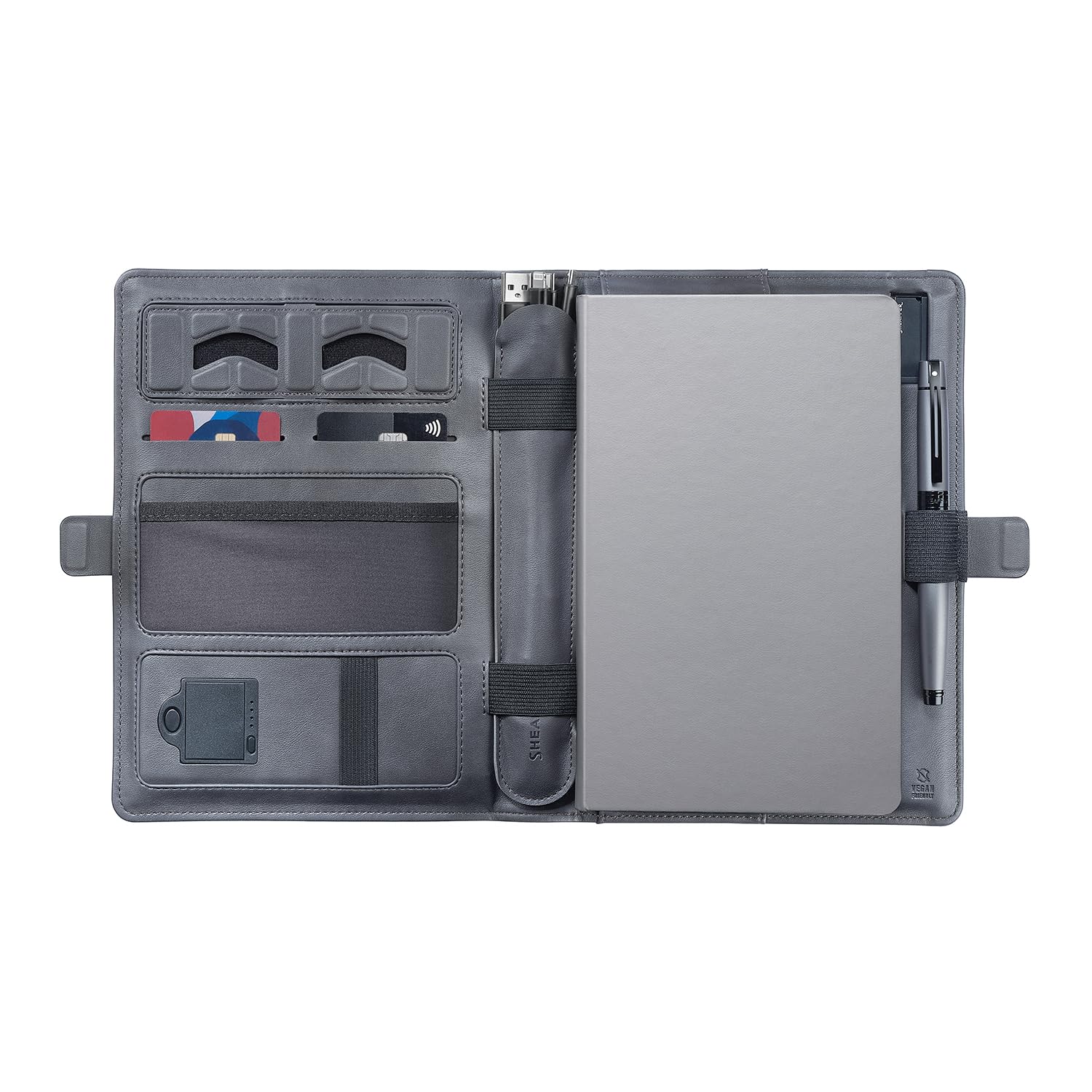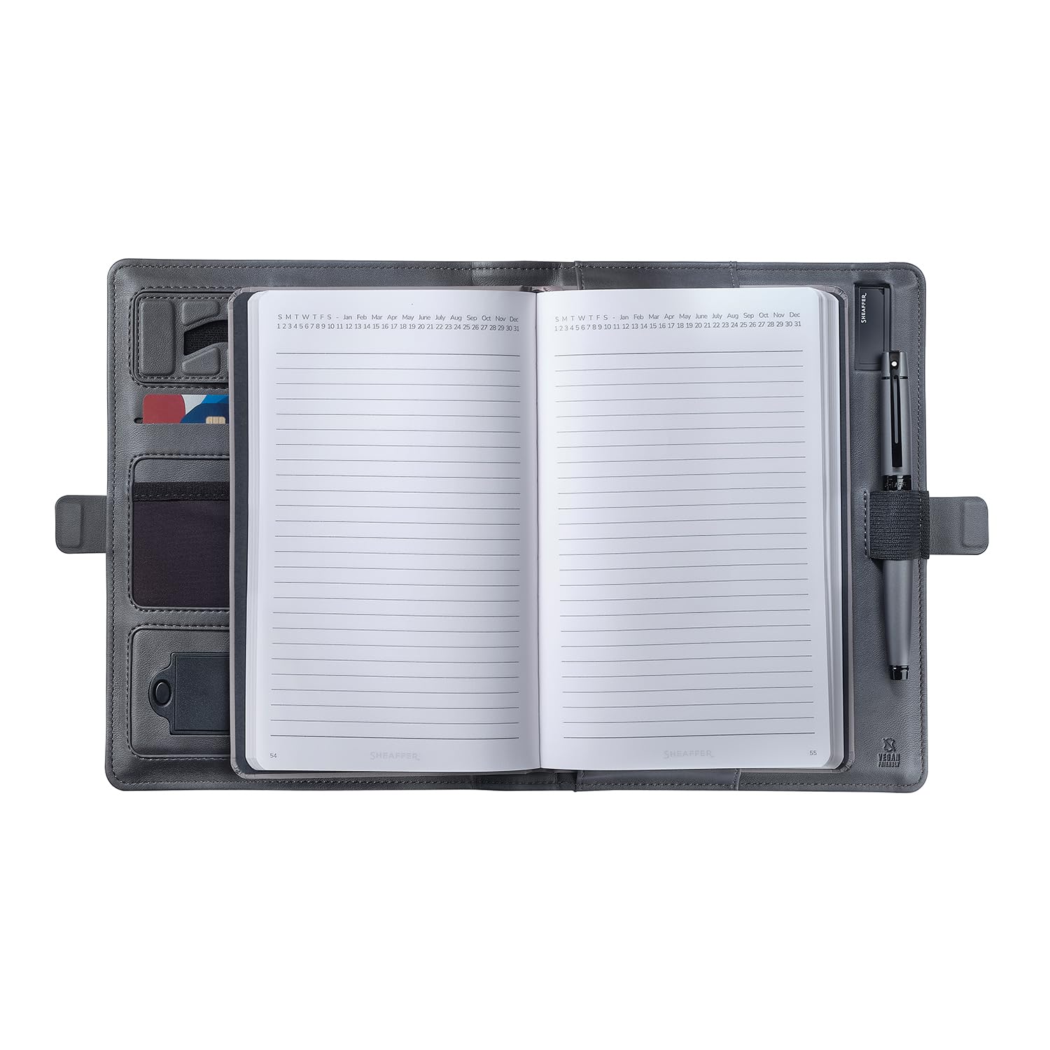 A notebook, power bank, and an organizer. All fused in one powerful package, the Sheaffer Superbook. Designed to unlock maximum productivity, its slim profile fits easily in your hand. Charge your smartphone wirelessly using the phone holder on the front or use the included 3-in-1 cable that is compatible with every smartphone. The Sheaffer Superbook is flight-safe to fit your on-the-go lifestyle. With multiple utility pouches, a dedicated pen holder and convertible phone holder, the Sheaffer Superbook is your supercharged productivity companion that you can carry everywhere.