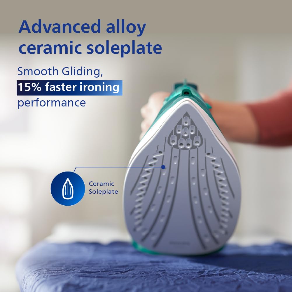The Philips DST5030/80, a powerful steam iron designed to deliver fast results and flawless finishes. With 2400 W of power, this iron heats up in seconds, providing strong steam performance to smooth out even the most stubborn wrinkles.