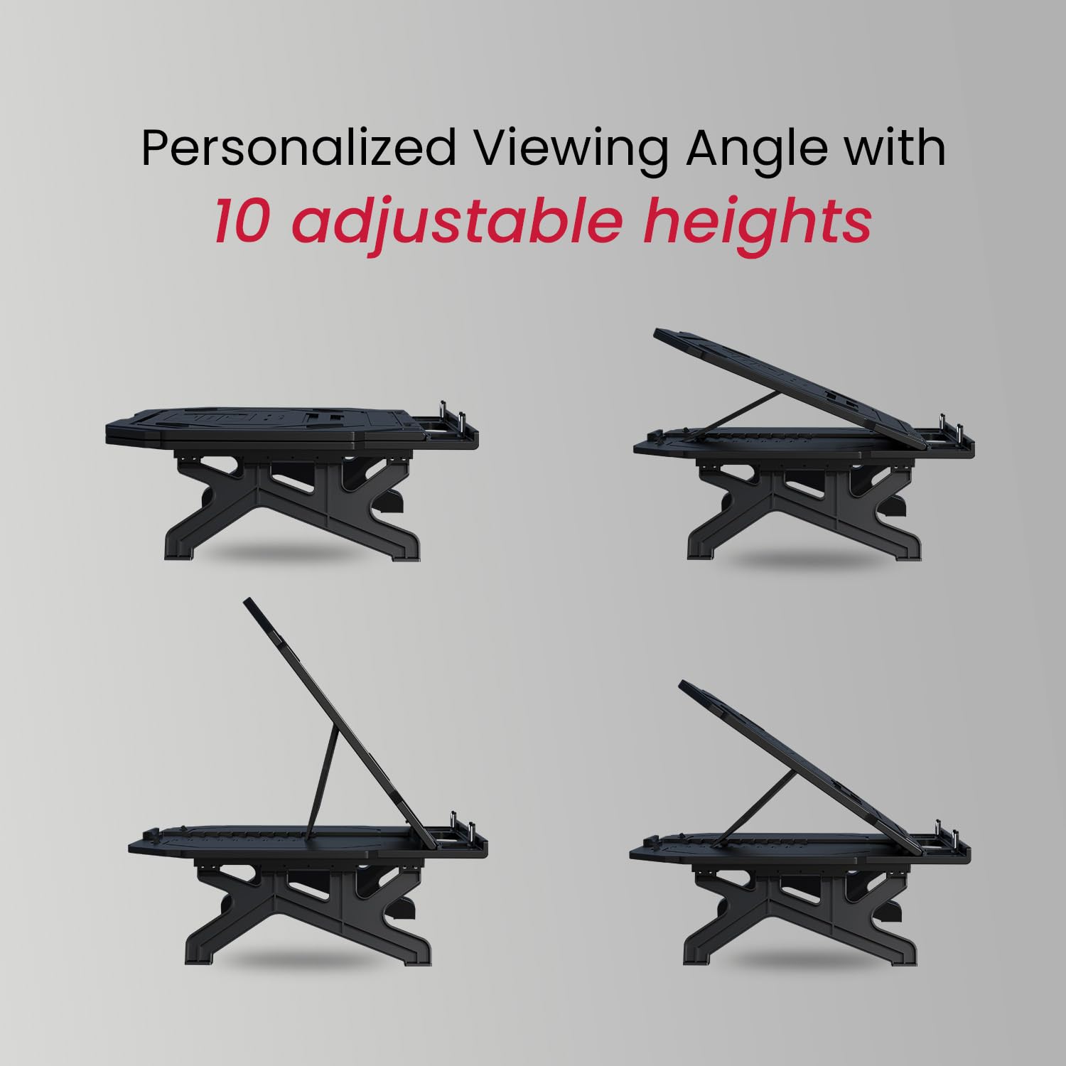 * Customizable Height With 10 adjustable heights, you can find the perfect angle and position that suits your ergonomic needs. Whether you're sitting or standing, you can find the perfect viewing angle for optimal productivity.
