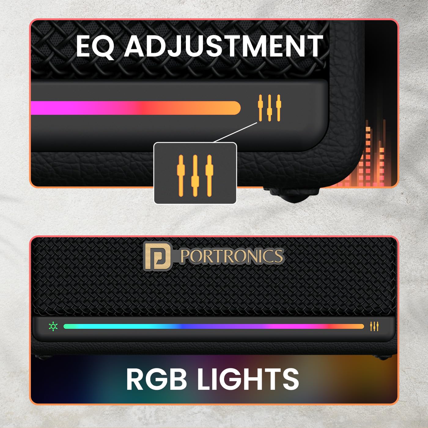 * Customizable Sound:Fine-tune your audio to perfection with easy EQ adjustments. Boost the bass, enhance vocals, or brighten the highs with this Portronics speaker.