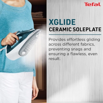 * X-Glide Ceramic Soleplate It comes with a ceramic coating that ensures smooth, snag-free gliding across all fabric types. The soleplate's scratch resistance maintains its sleek surface over time.