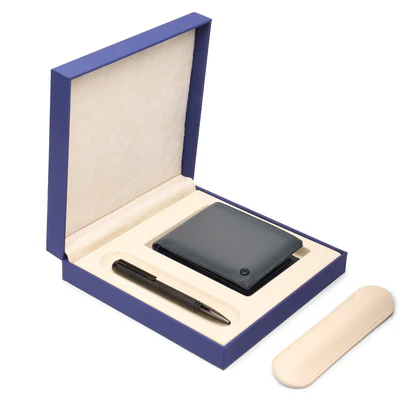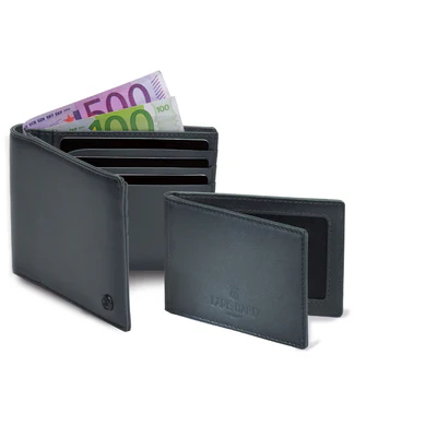 This beautifully curated gift set pairs a Torque ballpoint pen with a wallet from Lapis Bard’s popular Ducorium collection. The matte black, satin-finished ballpoint pen is crafted from lightweight aluminium. The integrated design of the elongated clip allows it to slip into your pocket without the slightest resistance. The brand’s emblem is proudly displayed on the cap-top. The perfectly balanced pen houses a super smooth easyFlow 9000 refill and it comes with a classic Italian leather pen pouch. The luxurious graphite wallet features edges hand-painted by highly skilled craftsmen who, inspired by Leonardo da Vinci's sfumato technique, gradually darken the colour as it imperceptibly passes from one shade to another. The wallet has a removable bifold insert with two card slots, a slip-in pocket, and two mesh ID windows. The set is presented in Lapis Bard’s signature blue gift box.