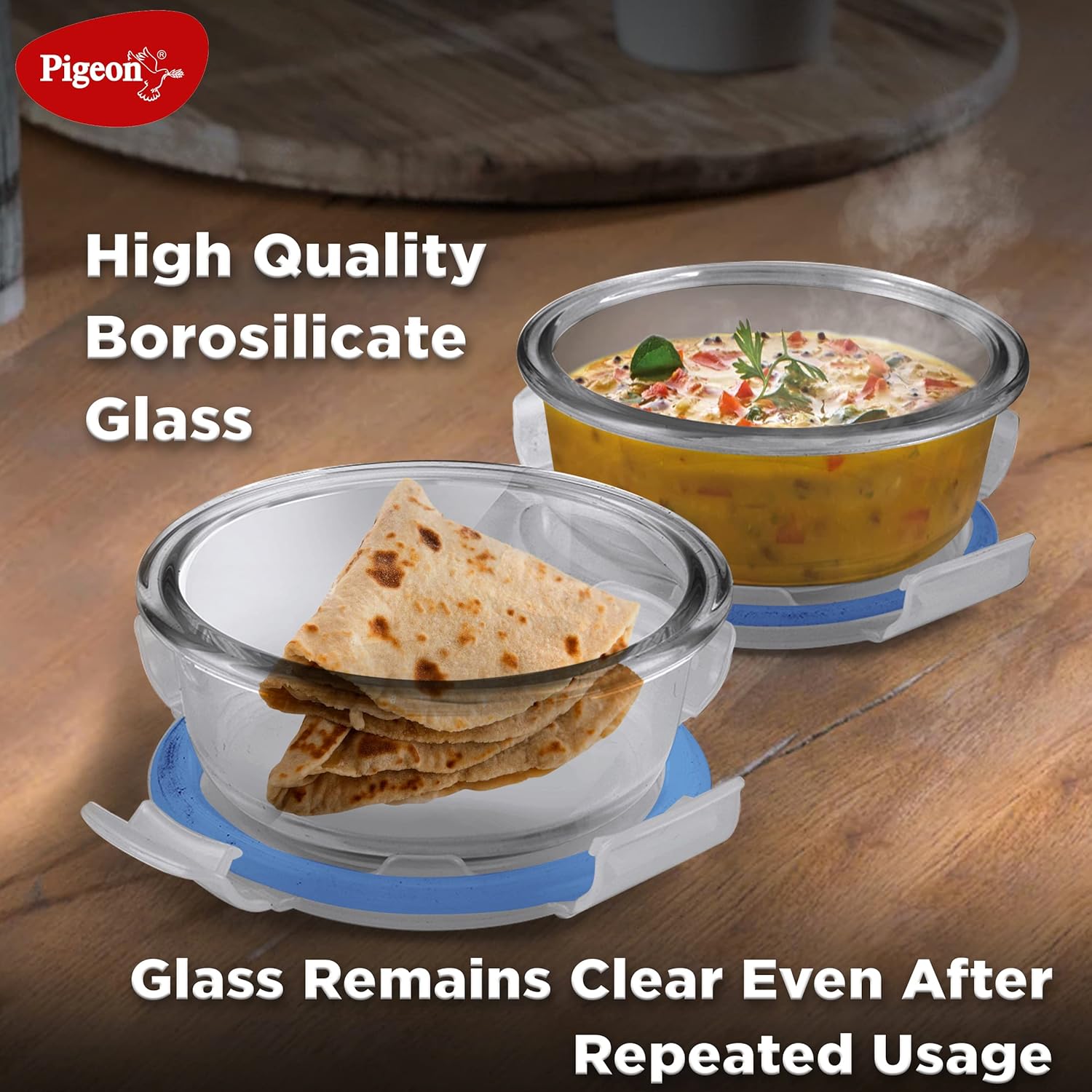 Pigeon's glass lunch boxes are made of quality borosilicate glass, which is resistant to extreme temperatures and extremely tough. As a result, they can withstand daily use and long commutes just what you need to carry all of your home-cooked meals to the school, college or office.