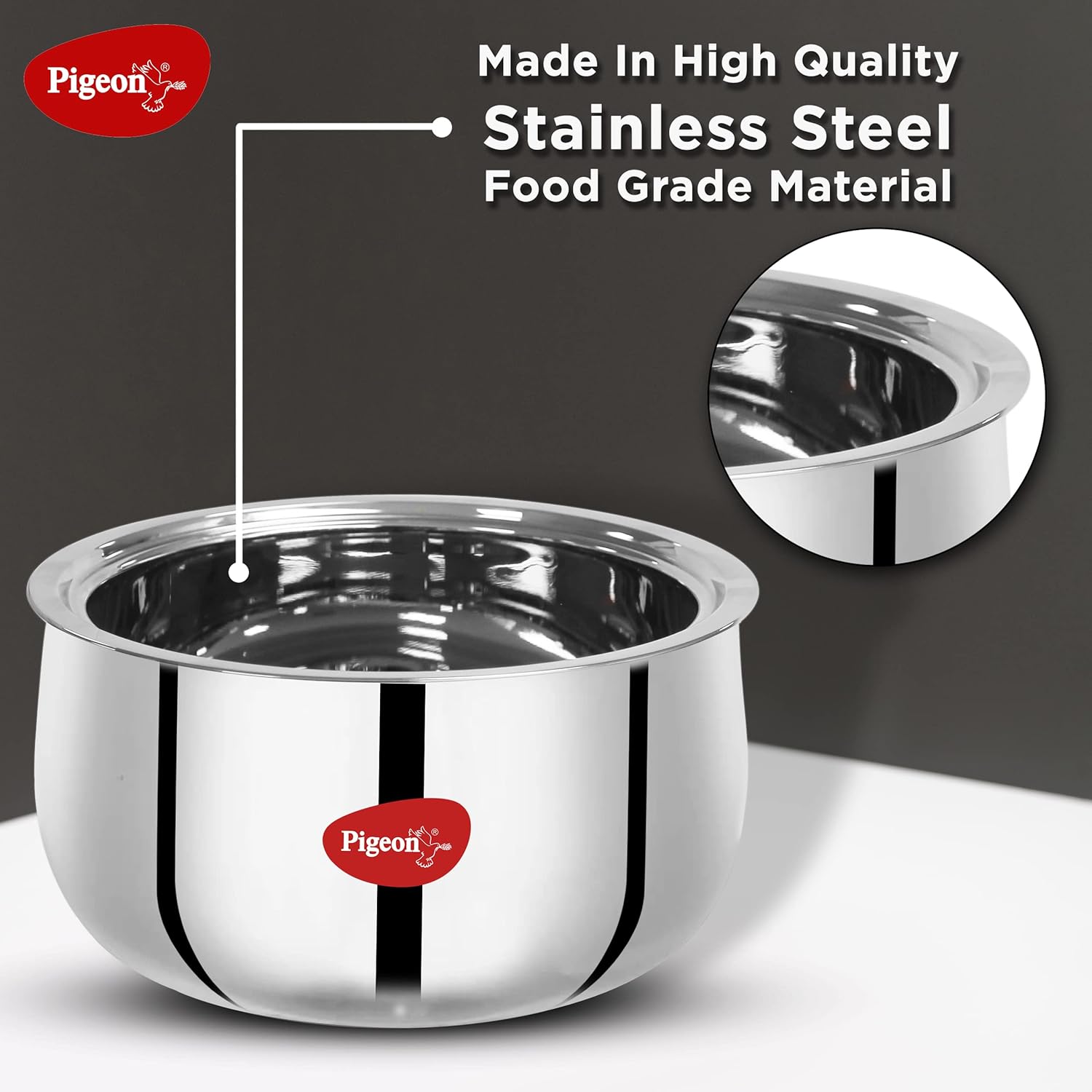 Pigeon Brings you an all new casserole set which is made of high grade stainless steel food grade material. The inner and outer is mirror polished and the scientifically prepared insulation between the double layered of steel brings you the joy of freshness which keeps your food warm for hours before serving which gives you time to prepare many other foods.