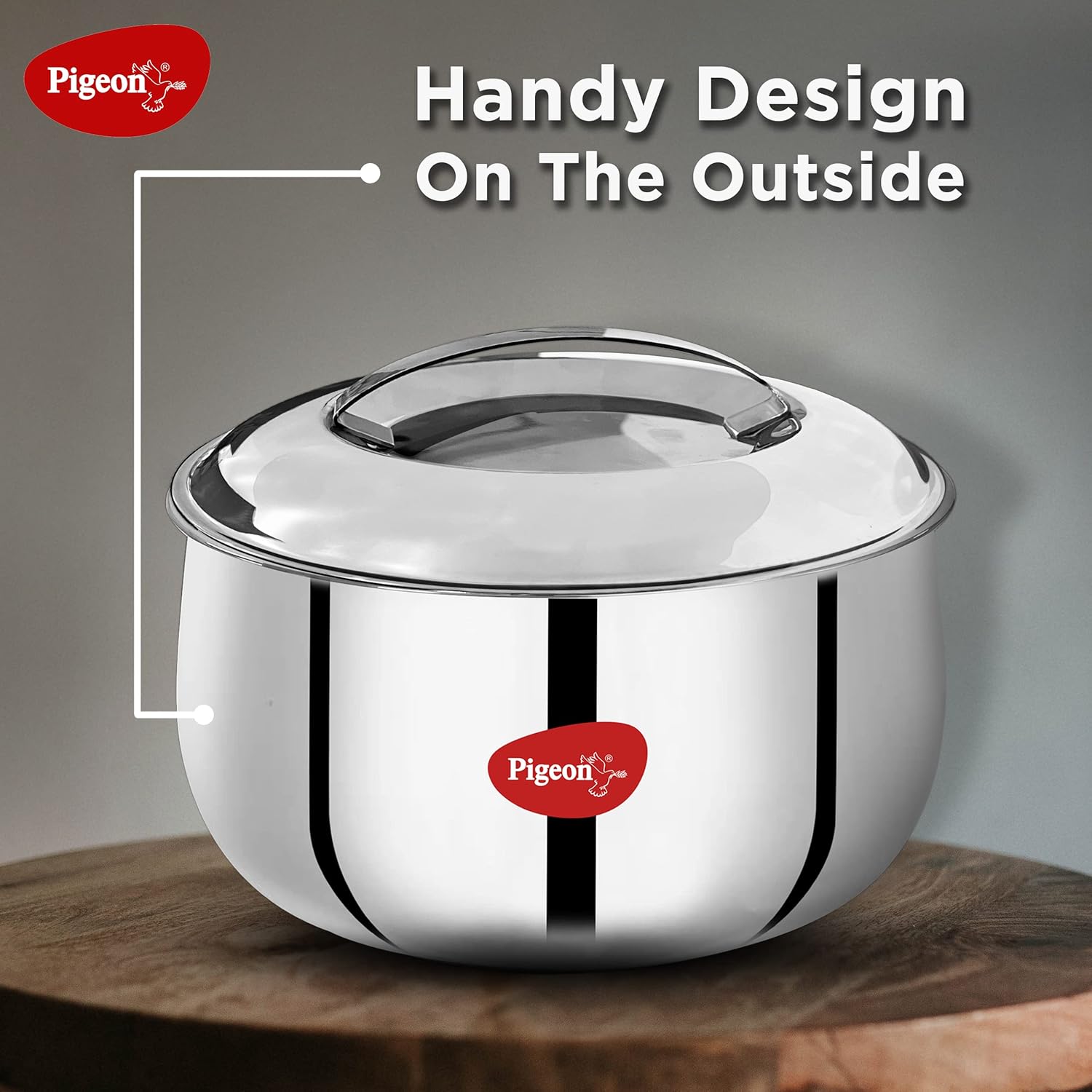 Pigeon Brings you an all new casserole set which is made of high grade stainless steel food grade material. The inner and outer is mirror polished and the scientifically prepared insulation between the double layered of steel brings you the joy of freshness which keeps your food warm for hours before serving which gives you time to prepare many other foods.