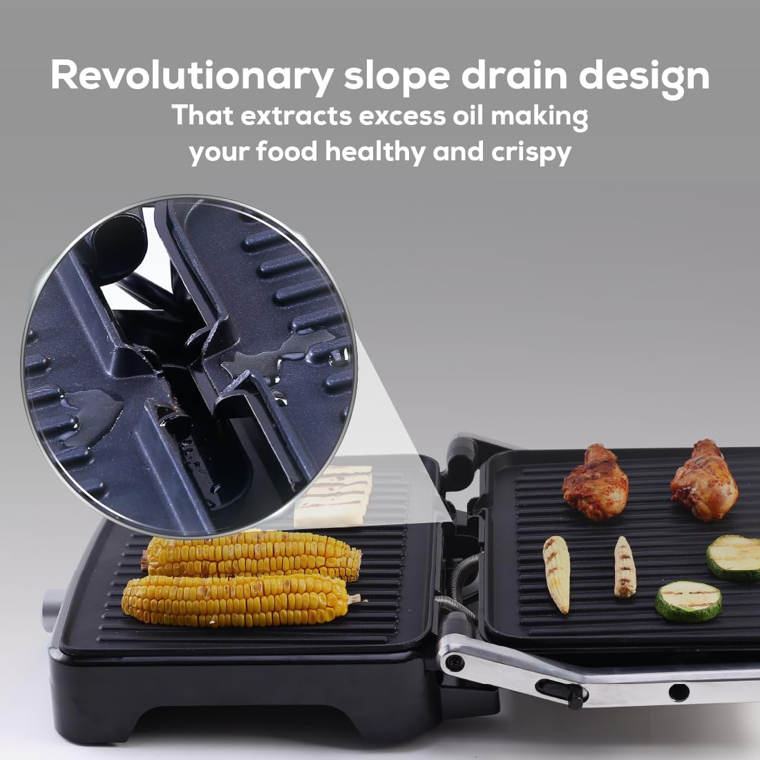 * Extracts every drop of excess oil which drains away due to the special sloping design
