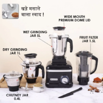 * Additional blunt edge blades enabling traditional stone grinding results for coarse dry masalas khade masale wala swaad!