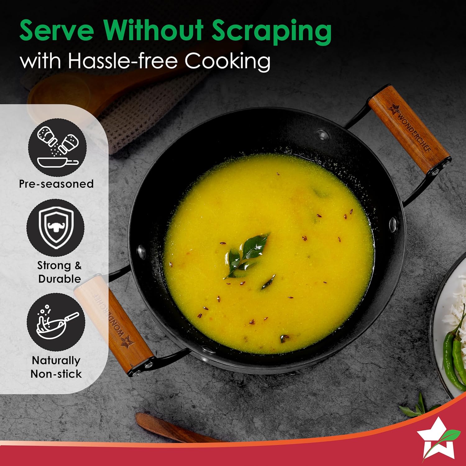 Wonderchef cast-iron cookware is an ideal companion for heavy-duty and authentic cooking and is designed for a longer shelf life. Due to its thickness, it withstands a longer cooking duration and ensures even heating and heat retention. One of the most significant advantages of Wonderchef cast-iron cookware is that it not only helps preserve food nutrients but also releases some amount of iron content in your food, making it healthier.