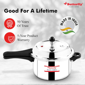 Included Components 1 No. of Butterfly Blueline Spillfree SS Pressure Cooker OLC 2 L, 1 No. of User Manual & Warranty Card