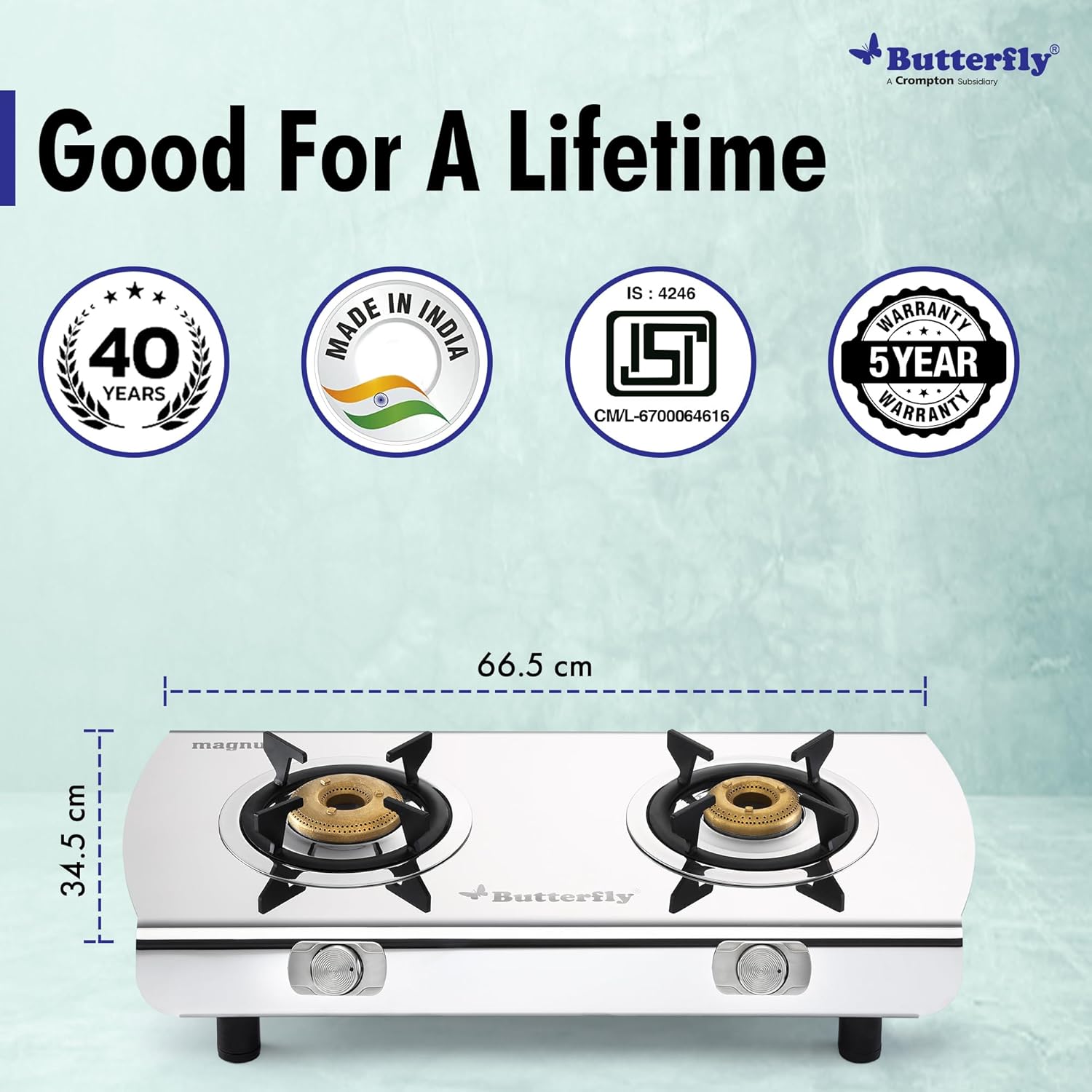 Included Components ‎1 No. of Butterfly Magnum Stainless Steel LPG Gas Stove, 1 No. of User Manual with Warranty Card
