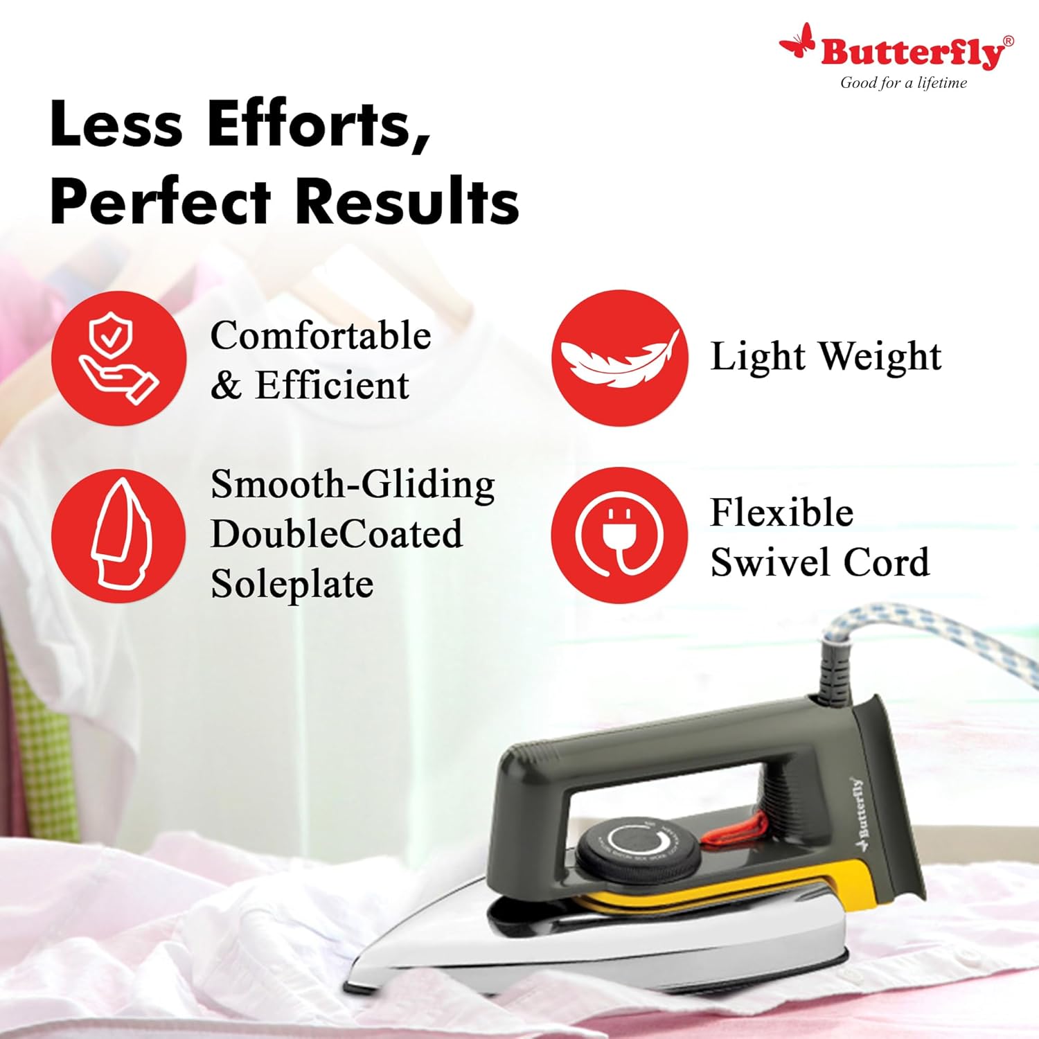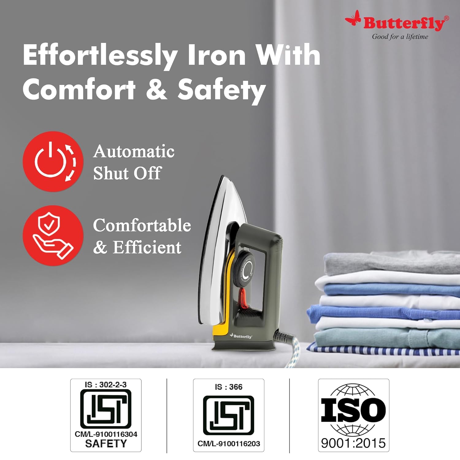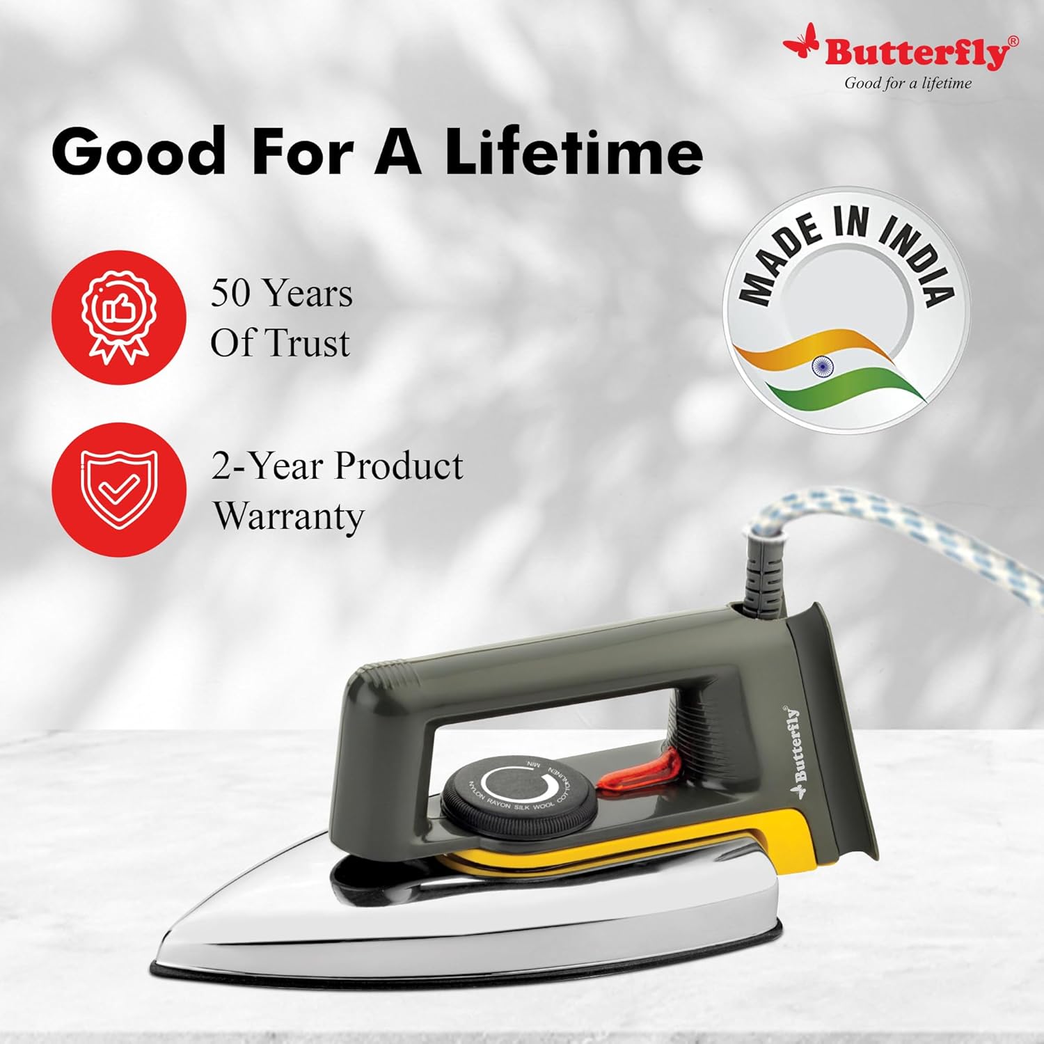 | Included Components | 1 No. of Butterfly Reva Dry Iron 1000 W, 1 No. of User Manual & Warranty Card |