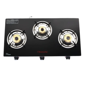 The Butterfly Trio 3-Burner Gas Stove is a modern, efficient, and sleek kitchen appliance designed to offer convenience and style for everyday cooking.