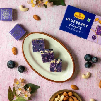 Haldiram’s Blueberry Delights is a premium sweet treat packed into a 125 g box. Each piece blends the succulent flavour of blueberries with rich sweetness and creamy texture, offering a delightful dessert experience. With a shelf life of about 45 days, it’s perfect for enjoying now or keeping around for festive snacking or gifting.