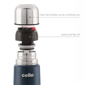 * Flip-Style Mouth And Versatile Lid: To Avoid The Risk Of Spillage, Cello Flipstyle Flask Comes With A Sturdy, Leak-Proof Flip-Top Lid That Makes Drinking And Pouring Hassle Free. Additionally, The Main Lid Doubles As A Convenient Cup, Providing A Practical Solution For Enjoying Your Favorite Beverages On The Go.