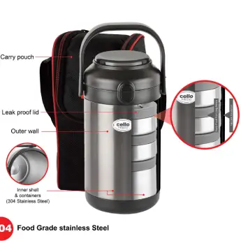 For over two decades, cello has been striving to create products that are not only complementary but also enhance the lifestyle of its users. Each product speaks volumes about the depth of research and the strength of perfection, and makes cello the preferred brand. Cello offers an unmatched range of stainless steel bottles that are made of premium quality stainless steel that is food grade and leak proof. Today, over 6 million families in India and millions around the world have made cello an integral part of their lives.Stylish and trendy Cello Fredo Stainless Steel Lunch Box ensures that your food stays fresh and healthy. It has a strong comfortable firm grip handle and extra component for foldable spoon and comes with a easy to carry pouch which makes it ideal to carry to school, office ,college or outdoors.