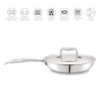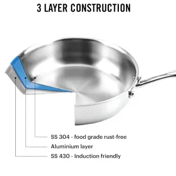 * Triply Stainless Steel Construction Cello Tri-Ply Frypan Boasts A Three-Layer Construction, Featuring A Thick Outer Layer Of Induction-Friendly Stainless Steel, Aluminum Layer For Even Heat Distribution, And An 18/10 Stainless Steel Thick Inner Layer For Flavor Retention And Nutrient Preservation.