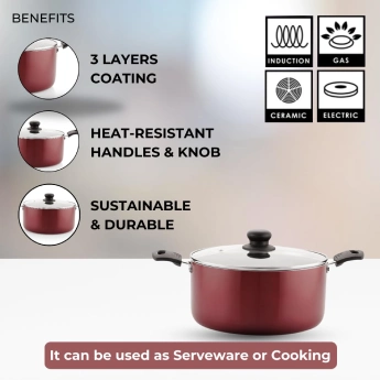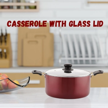 Experience hassle-free cooking with our Beautiful Triple Layer Coating Non Stick Kadhai/Kadai by Pencil. Its robust coating ensures lasting durability and effortless cooking. Crafted without harmful substances, it offers safety and versatility, compatible with various cooktops, and includes a Red colored non-stick Kadhai/Kadai with glass lid for all your culinary needs.