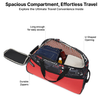 | Number Of Wheels | Equipped with 2 smooth wheels, making it a trolley-style duffle bag ideal for rolling through airports or pavements |
