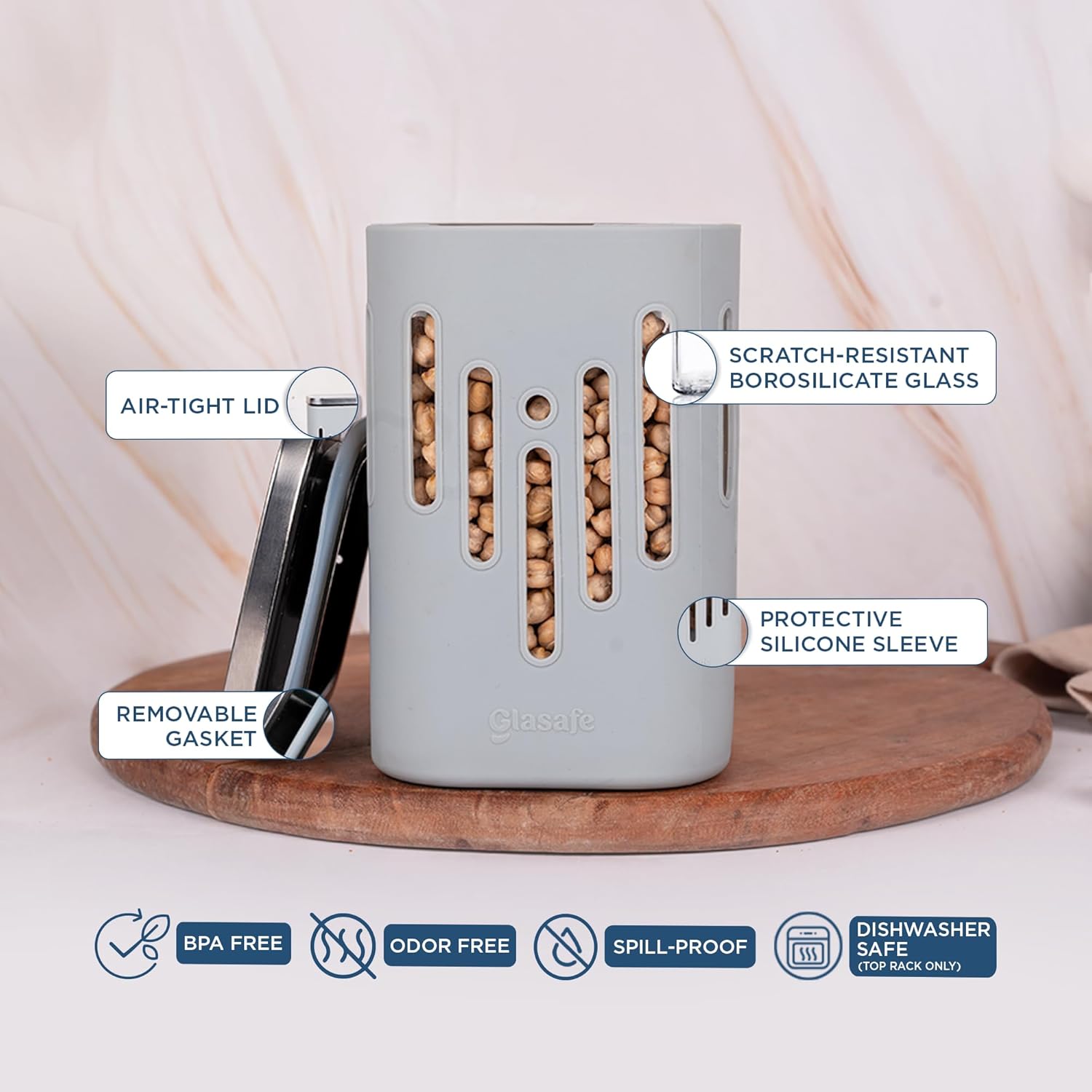 Introducing the GLASAFE Store 'O' Grip Borosilicate Glass Kitchen Storage Container– a  fusion of style and practicality. Crafted from premium borosilicate glass, free from harmful chemicals, it promises a safe and elegant storage solution. The silicone sleeve not only ensures a secure grip and prevents slips but also adds a touch of sophistication to your kitchen essentials. Elevate your storage with this chic and durable glass container – a stylish must-have for every kitchen.