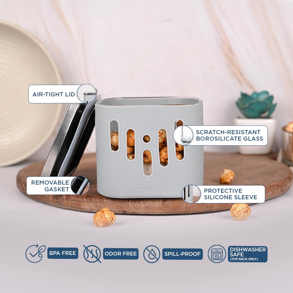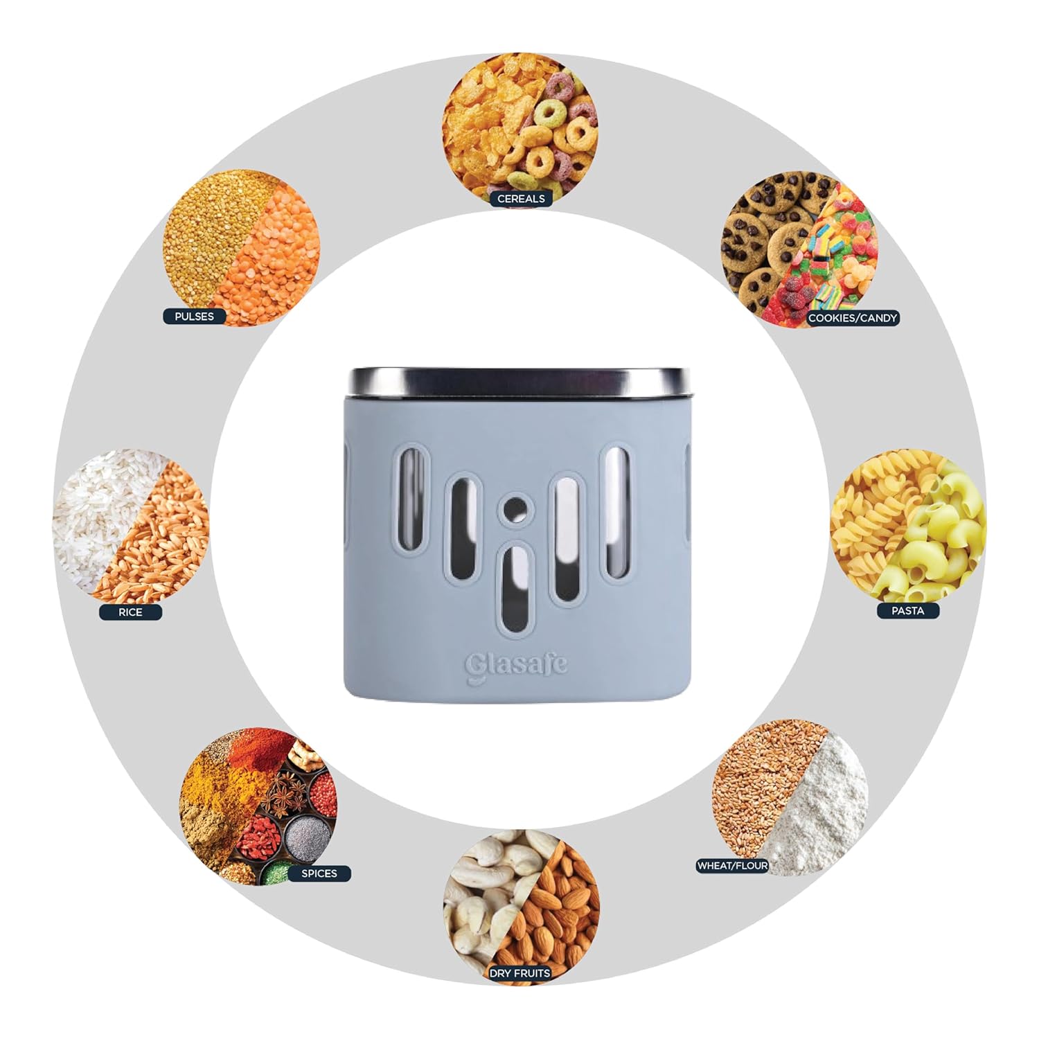 Introducing the GLASAFE Store 'O' Grip Borosilicate Glass Kitchen Storage Container– a  fusion of style and practicality. Crafted from premium borosilicate glass, free from harmful chemicals, it promises a safe and elegant storage solution. The silicone sleeve not only ensures a secure grip and prevents slips but also adds a touch of sophistication to your kitchen essentials. Elevate your storage with this chic and durable glass container – a stylish must-have for every kitchen.