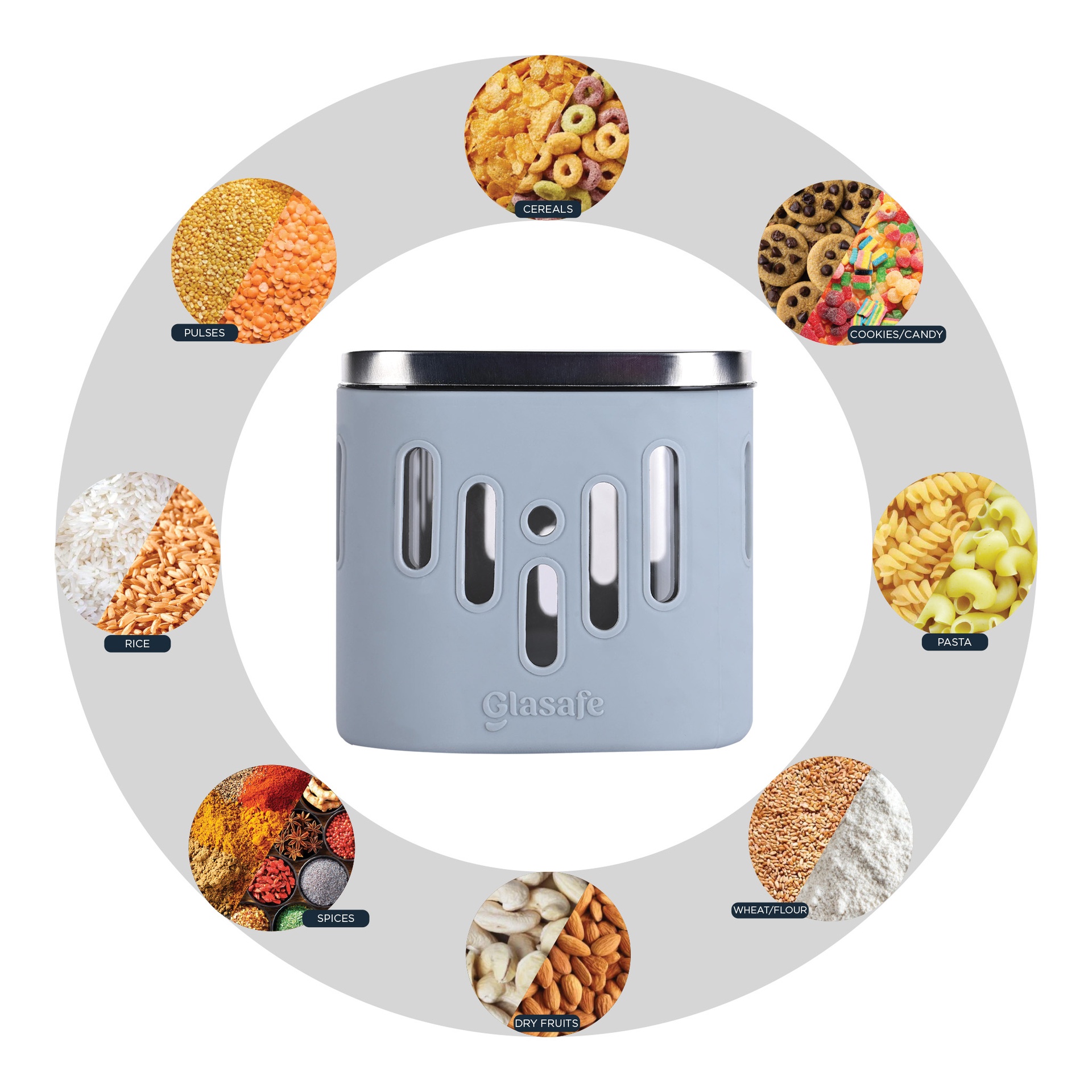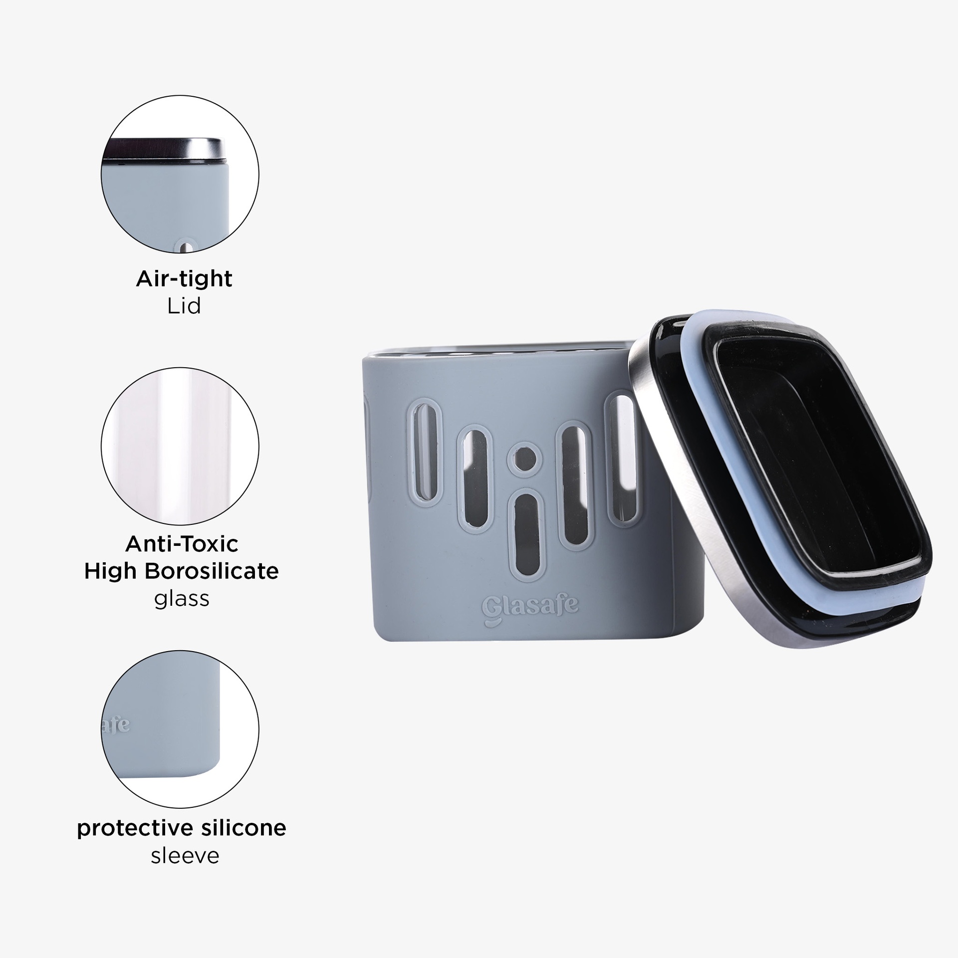 Glasafe Store 'O' Grip Borosilicate Glass Container In Grey A 600 Ml Set Of 4 Is A Stylish And Safe Storage Solution. Chemical-Free Glass With A Secure Grip, Preventing Slips. Elevate Your Kitchen Essentials With This Chic And Durable Container.