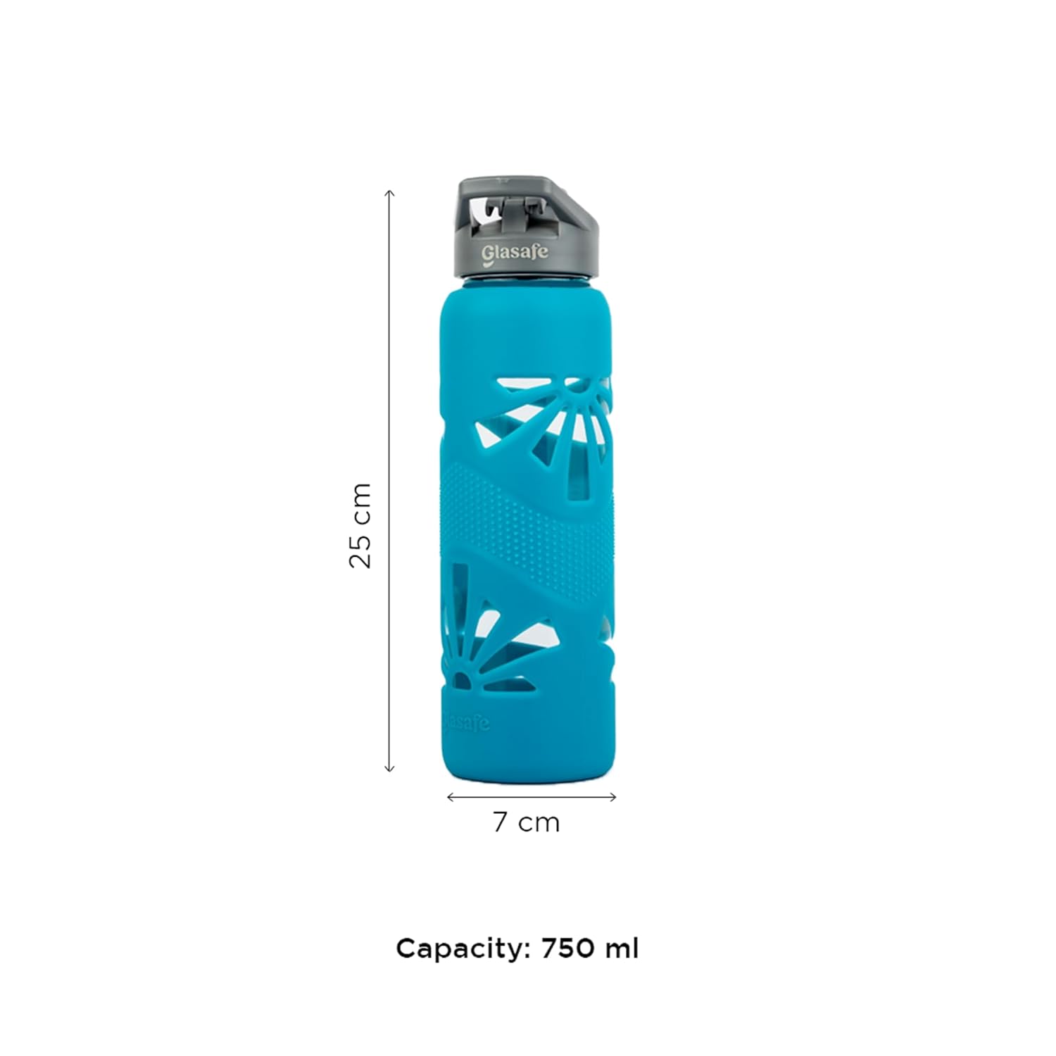 Specifications for Glass Water Bottle GLASAFE Hydrate Clear Grip - 750 ml