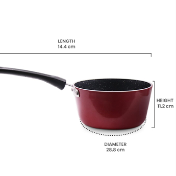 The Milton Procook Granito Saucepan with Bakelite Handle is a versatile and durable cookware option, perfect for everyday kitchen tasks. With a 14 cm size, it is designed to handle a variety of cooking needs, from boiling water and milk to preparing sauces, tea, or soups. The saucepan features a high-quality granite coating, providing a non-stick surface that ensures easy food release and effortless cleaning. This coating also enhances the longevity of the pan, making it resistant to scratches and damage, even with frequent use. The saucepan is crafted from high-quality aluminium, known for its excellent heat conductivity, which ensures even cooking and reduces hot spots. Whether you're boiling milk, making tea, or simmering sauces, this pan offers consistent heat distribution for better cooking results.