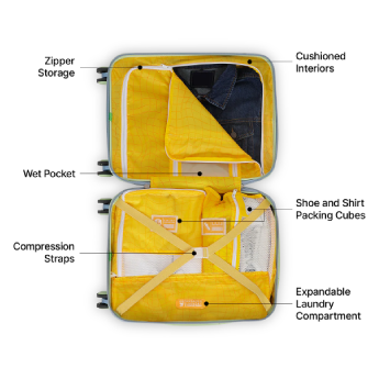 * Ultra Smooth 8 Wheels Engineered for seamless 360° movement, ensuring easy navigation through airports, train stations, and busy streets.