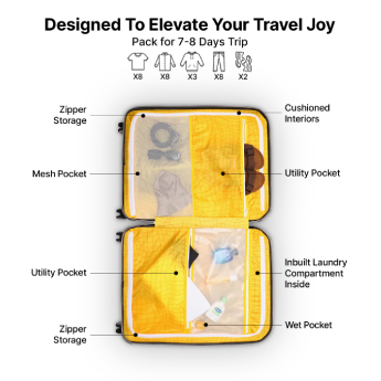 * Ultra Smooth 8 Wheels Engineered for seamless 360° movement, ensuring easy navigation through airports, train stations, and busy streets.