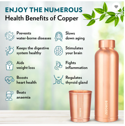 * Drinking water from a copper vessel can help prevent many diseases & help maintain cardiovascular health