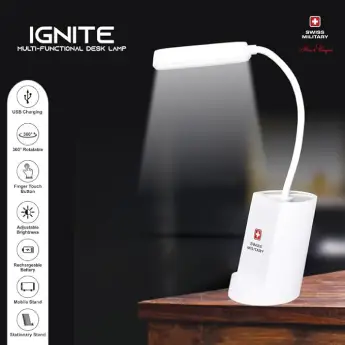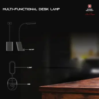 The SWISS MILITARY Ignite Desk Lamp. Designed for modern professionals and students, this sleek and functional desk lamp combines advanced lighting technology with a compact, energy-efficient design. Whether you're working, reading, or studying, the Ignite Desk Lamp provides optimal lighting for any task.