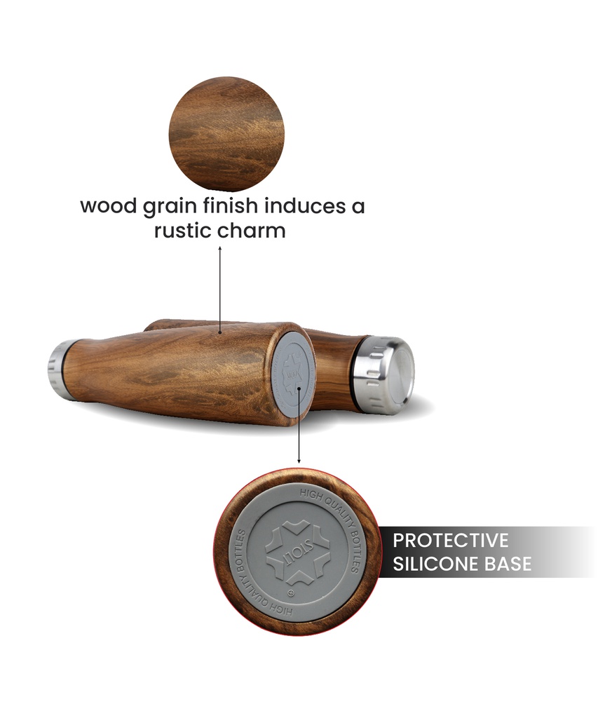 INDUS – Double walled bottle is a remarkable bottle which seamlessly combines modern design with natural aesthetics. The exquisite wood grain finish adorning the outer body with an beautifully designed Steel Cap induces a rustic charm.