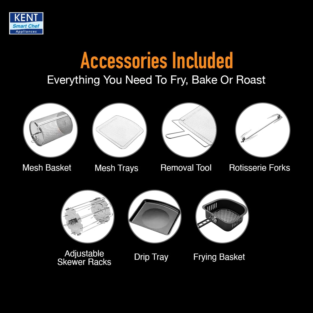 Introducing the KENT Digital Air Fryer Oven 12L, your new go-to for healthier cooking. Using advanced rapid air technology, it fries, bakes, grills, and roasts with up to 80% less oil, ensuring crispy, delicious results every time. Its spacious 12L capacity and intuitive digital controls make preparing meals effortless. Upgrade your kitchen with the KENT Digital Air Fryer Oven 12L – where health and taste meet seamlessly.