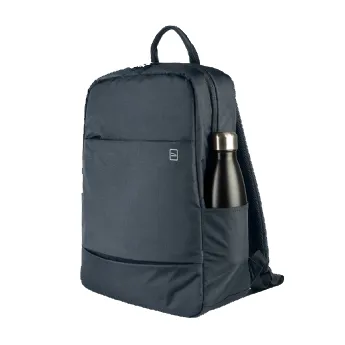 Lightweight backpack in fabric made from recycled plastic featuring a modern, compact design. Perfect for MacBooks and laptops up to 15.6”. The adjustable, padded shoulder straps together with the ergonomic back and flat, external, organizer pocket on the front, make it convenient and useful for both work and leisure.