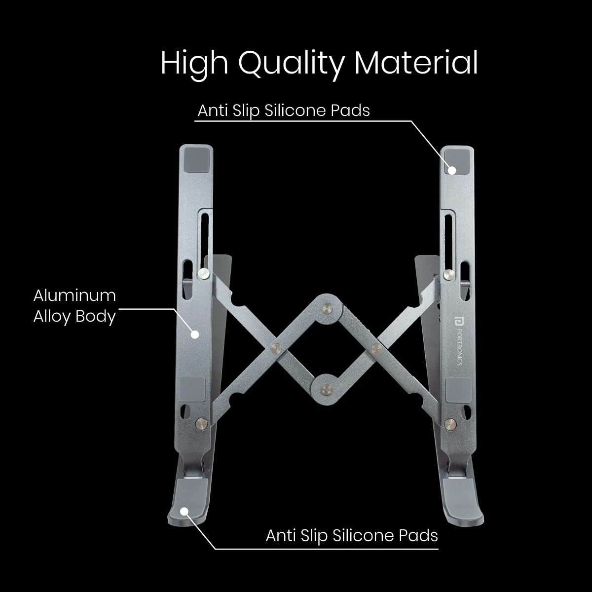 The PORTRONICS My Buddy K portable laptop stand is a sleek, ergonomic solution designed to improve your laptop experience by providing comfort, stability, and convenience. Tailored for laptops up to 15.6 inches, this stand helps elevate your device to an optimal viewing and typing height, reducing neck and back strain during long working or browsing sessions.