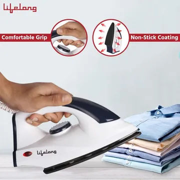 The Lifelong 1000W Iron Box is a reliable and efficient appliance designed to make your ironing tasks effortless. With a powerful 1000-watt heating element, it delivers fast and consistent heat, ensuring smooth and wrinkle-free clothes in no time. The lightweight design makes it easy to handle and maneuver, while the non-stick soleplate ensures smooth gliding over fabrics without sticking or damaging your clothes.Equipped with an adjustable temperature control dial, the Lifelong iron allows you to choose the optimal heat for different types of fabrics, from delicate silks to sturdy cotton. The 360-degree swivel cord provides flexibility and convenience during use, allowing you to reach every corner of your clothes with ease.Ideal for daily use, the Lifelong 1000W Iron Box is built to last, offering durability, safety, and outstanding performance, making it a perfect addition to your household appliances.