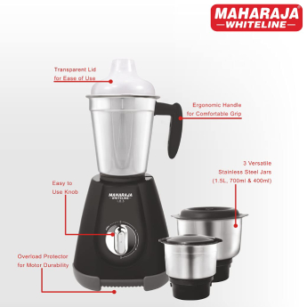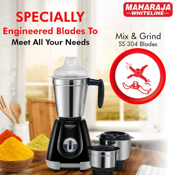 The Maharaja Whiteline 1..2..3.. is a grinder that can grind continuously for 30 minutes. It ensures consistency of the food flavours.This mixer grinder has a powerful motor which comes with 20,000 RPM speed & delivers quick and efficient performance.