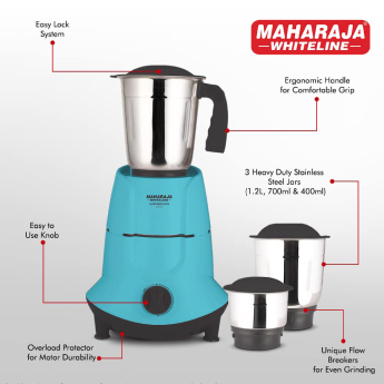| Included Components | 1 Mixer Body, 1 Liquidizer Jar (1.2L), 1 Grinder Jar (700ml), 1 Chutney Jar (400 ml) |