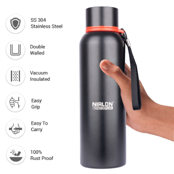 NIRLON Stainless Steel Vacuum Insulated Flask Water Bottle for Travelling, Gym, Office, Trekking and School, Black, 750ml