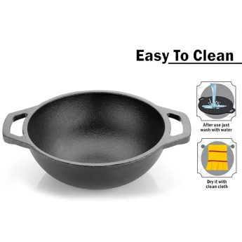 Cast iron has been used in kitchens in India and other parts of Asia for over two thousand years, and has spread to other parts of the world because of its wonderful cooking properties and health benefits. o Cast iron retains heat better than most other cookware. It is slow to heat up, but once it is hot, it stays hot for long, and retains heat well. Foods that need higher temperatures will brown better, cook faster and crisper, and cook more evenly inside and out. o Cast iron gets better with use. As you cook in it, it builds a natural nonstick surface over time, called 'seasoning', which is a smooth and tough cooking surface. So, the more you use it, the better it gets! o Iron is widely regarded as beneficial when used for cooking.