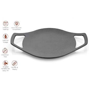 * Expect improved taste when cooking in cast iron Tawa. Dosas & Chapati's taste much better in cast iron Tawa compared to other vessels.