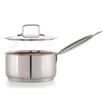 NIRLON Deluxe Series Stainless Steel Impact Bonded Bottom Sauce Pan with Steel Lid. Encapsulated stainless steel base with thick aluminium core inside for even distribution of heat and faster cooking compared to normal stainless steel cookware. Impact Bonded Bottom sauce pan is suitable for making soups, sauce, tea, boiling milk, boiling veggies, cooking grains, and much more. Superior hygienic stainless steel Sauce Pan having glossy mirror finish outside and matt finish inside for rich premium feeling. Firmly riveted stainless steel handle with two rivets for long lasting usage. The hole at the end of the saucepan handle can be used to hang the pan in the kitchen shelf. A saucepan is a multi-functional and essential kitchen accessory for day-to-day cooking. Toughened Steel lid with air event allows while cooking ,air vent allows excess steam to release while cooking. Specially designed easy-pour spout for pouring your favourite beverage to your mug or bowl. It is Dishwasher safe pan for ease of cleaning and maintaining your pan. Thick induction base which provides flexibility of using the pan on gas stove, induction, hot plate and also evenly heats your beverage.