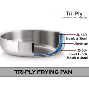 * Triply means 3 layers of metal bounded together, 1st-food grade 18/8 stainless steel used in the inner surface for healthy cooking, it is the most superior stainless steel with the longest life